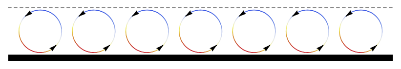 Let's try to get a grip on what the Lorenz attractor really is. It's named after the meteorologist Edward Lorenz who was trying to understand why weather prediction is inherently so difficult to predict very far out. To get to the crux of the issue, he did what many scientists do - he drastically simplified. In many ways, the atmosphere behaves like a fluid so he studied the simplest fluid with interesting dynamics he could think of - a pot of slowly heating water. As the water is heateded slowly, convection rolls begin. The situation might look something like so.