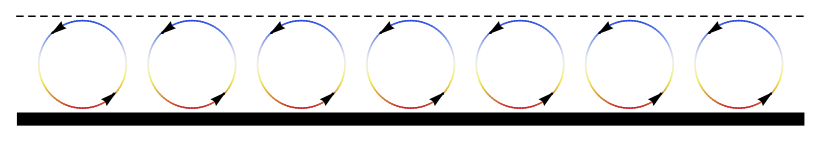 When \(z=0\) so that there is no distortion from linearity of the temperature gradient, the convection picture looks like so: