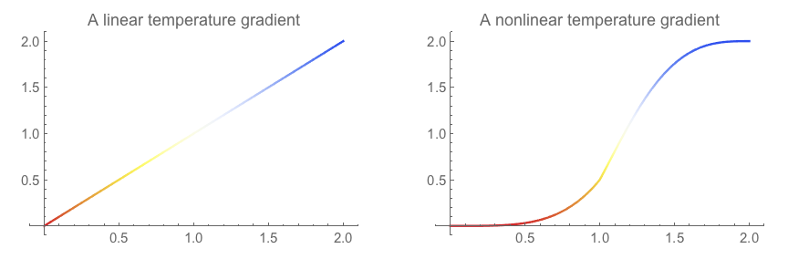 I think the first two are fairly easy to understand but the last is more subtle, as the temperature gradient is simply indicated by the color in the picture. It's easier to see this effect in a simple graph.