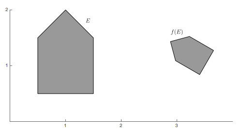 The simplest type of iterated function system is simply a list of contractive similarities. The important fact about a similarity (sometimes called a similarity transformation) is that the image of a set under a similarity is a geometrically similar figure. A generic illustration of this is shown below.