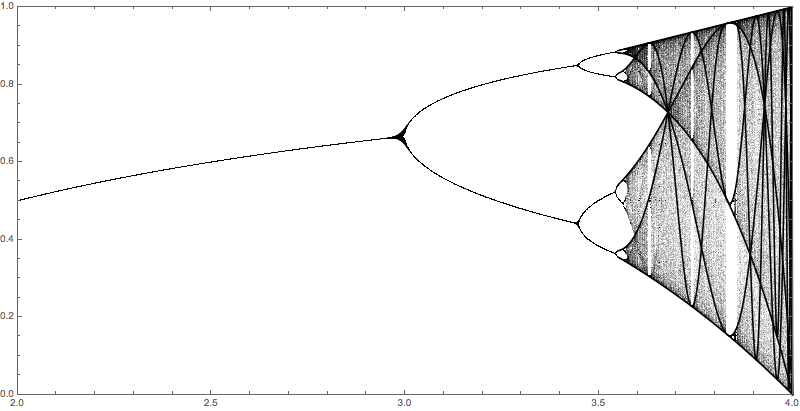 The changing dynamics of cobweb plots can be encoded in a single, static image called a bifurcation diagram.