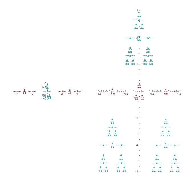 The image below shows a pair of digraph self-similar sets. All similarities are simple scalings with scaling factors of 1/3.