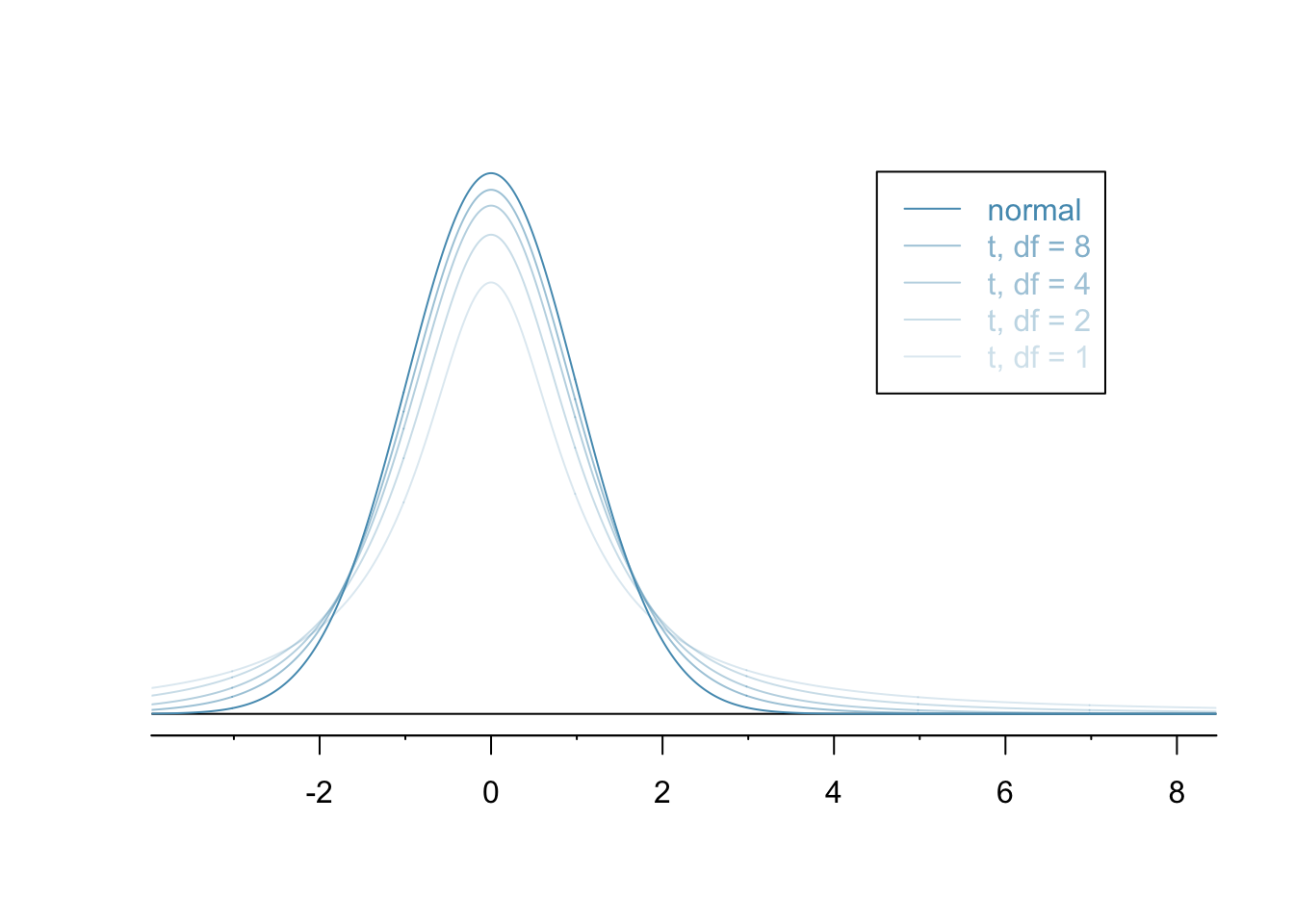 Just as with the normal distribution, there's not just one $t$-distribution but, rather, a family of distributions.