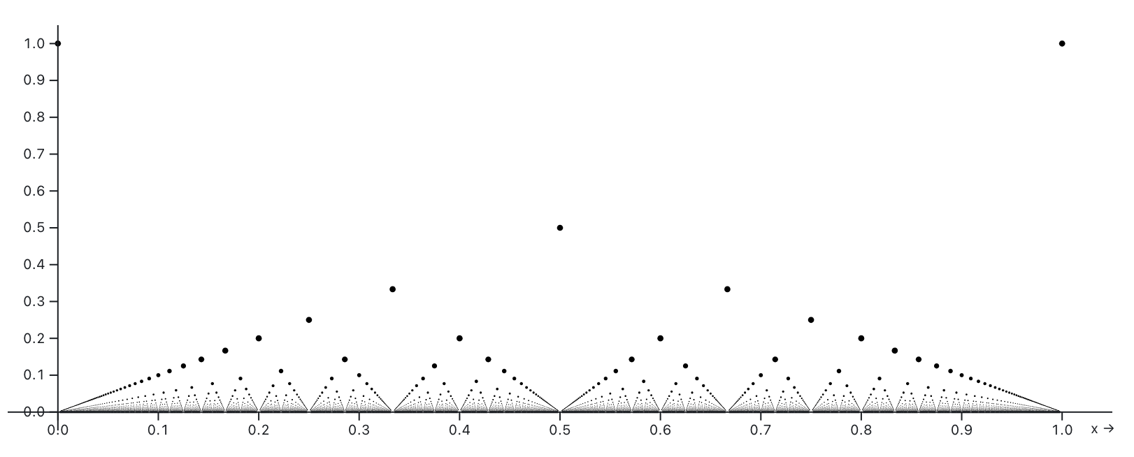 Our text features strange examples at the beginning of each chapter, generally to help us understand why we need to think about this stuff carefully. This examples in this chapter are called Dirichlet's function and Thomae's function.