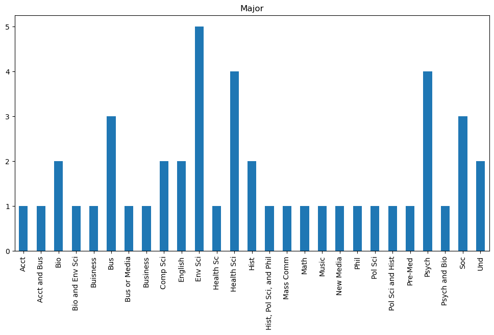 And here’s a bar plot for the majors in the class. Note that I had to standardize the responses a bit.