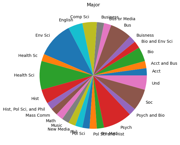 Lots of people seem to love pie charts. Often, though, there’s really no way to tell absolute magnitude and they can be confusing for data sets of moderate size. Here’s a pie chart for the majors in the class: