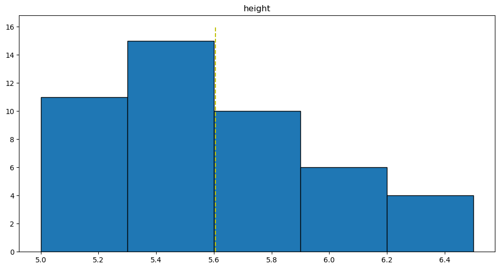 We can compute the average heights of folks in the class to be about 5.6 feet or just over 5 foot 7 inches.