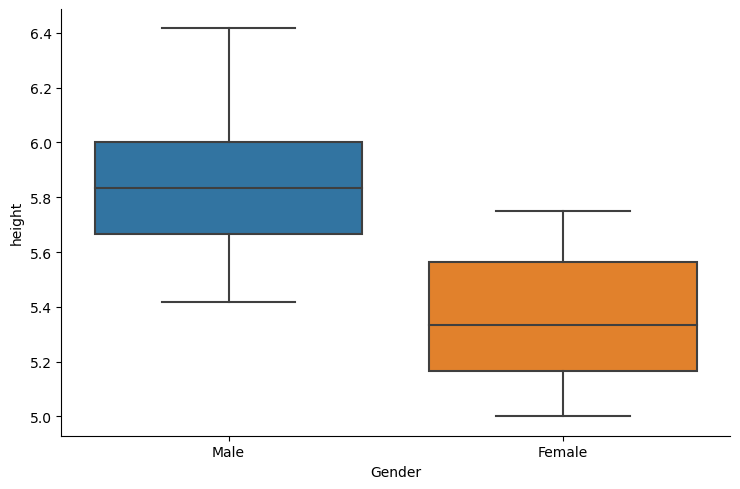 Sometimes we’ll want to find if there’s a relationship between two variables. In the following side-by-side boxplot, we examine how the relationship between the numerical variable height and the categorical variable gender.