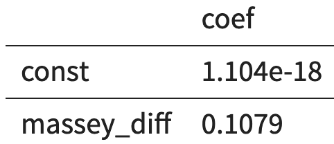 | massey_diff | 0.1106 | 0.013 | 7.506 | 0.000 | 0.074 | 0.127 |