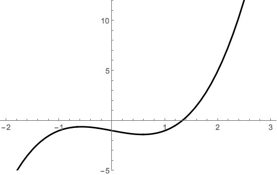 Let \(f(x) = x^3-x-1\). It's evident from a graph that there's one root.