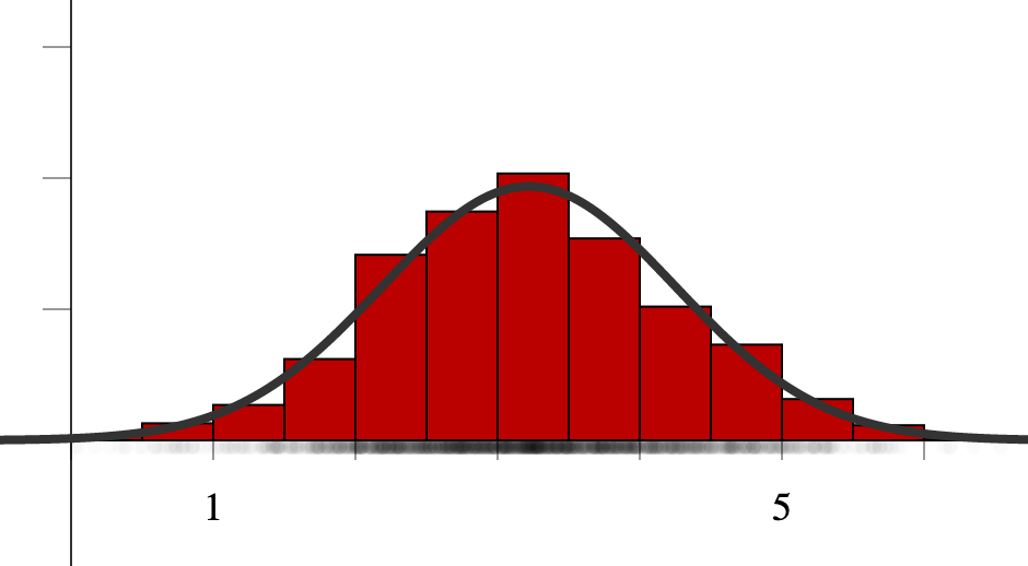 Of course, our driving mission is to understand data, be it categorical or numerical. Don't forget that data drives the following histogram, that in turn drives the approximating normal curve.