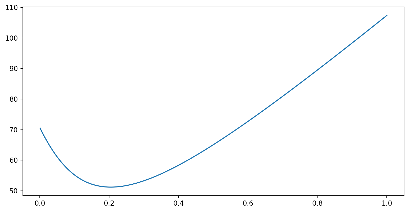 It sure looks like there’s a minimum around \(a=0.2\). Here’s all we need to do to find that more precisely: