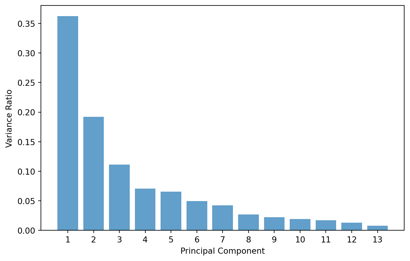 The idea is to predict the type of wine given the chemical data. The “type” of wine is determined by the grape or grapes used in making it. In Italian wines, those might be Pinot Gris, Merlot, Sangiovese, or any of quite a few others. There’s only three types in this data set and we’re going to try that type using logistic regression without and with PCA.