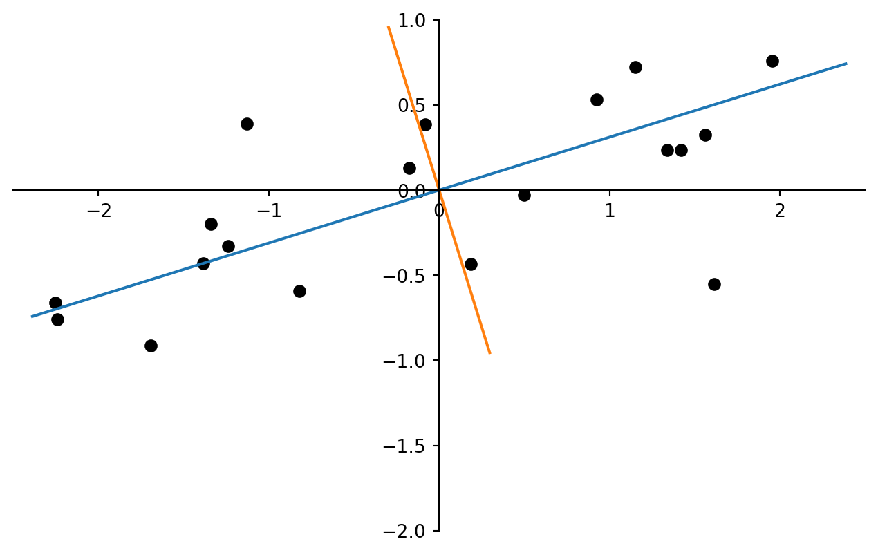 Once you’ve found the direction of largest variation, you can project the remaining data along that direction onto the \(M-1\) dimensional subspace called the orthogonal complement. You can then find the direction of next greatest variability.
