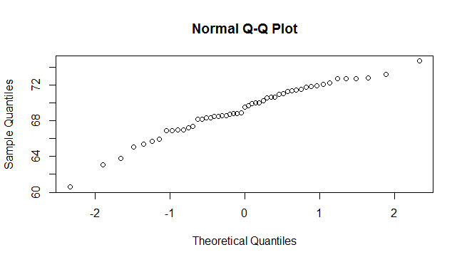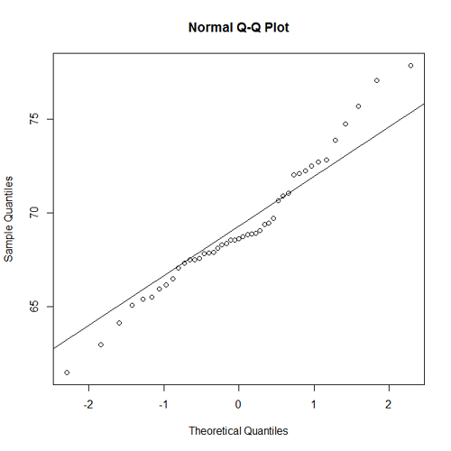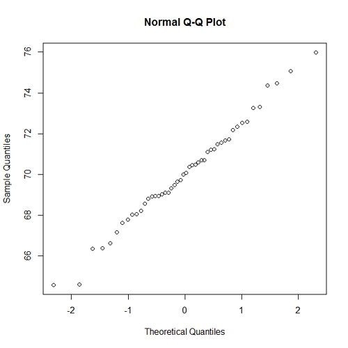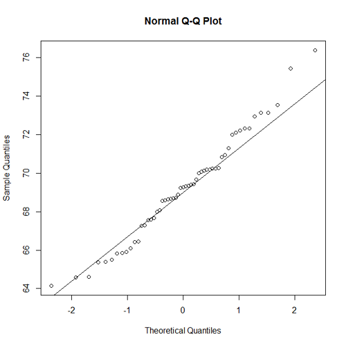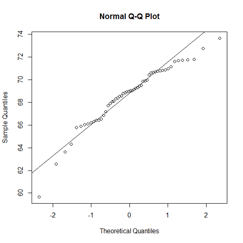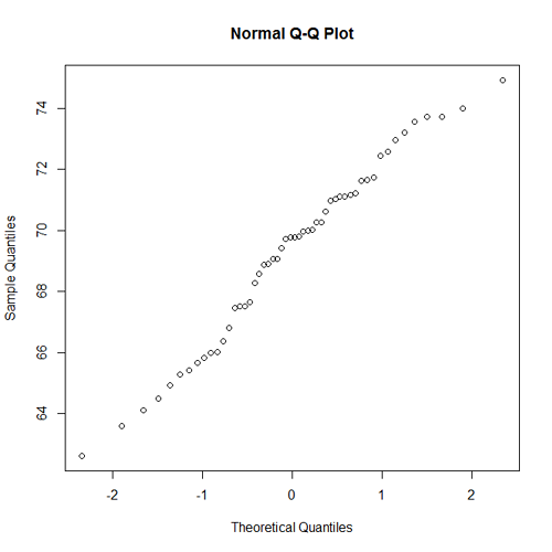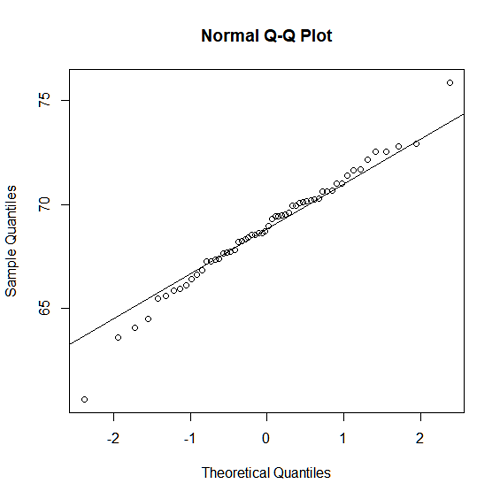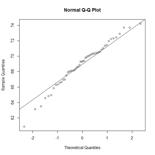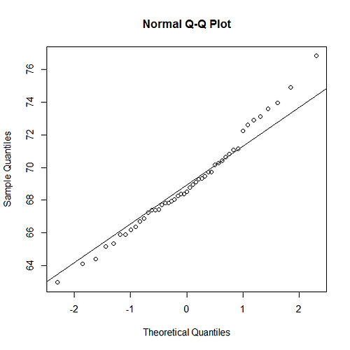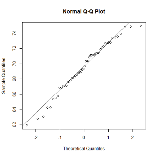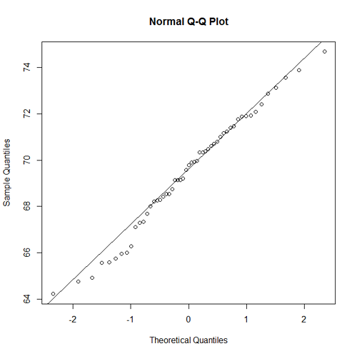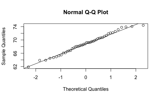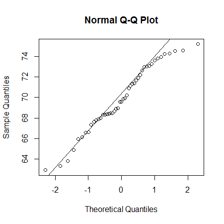 - A normal probability plot for the heights of the men