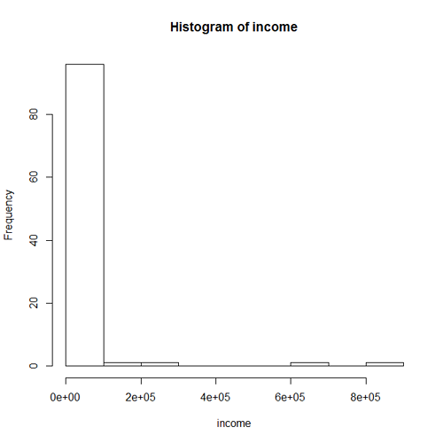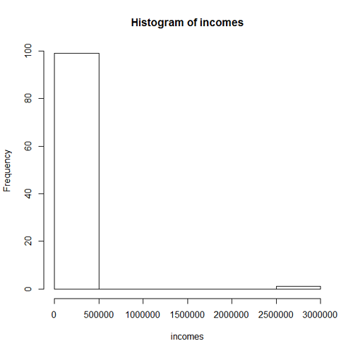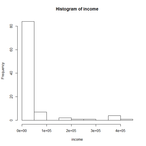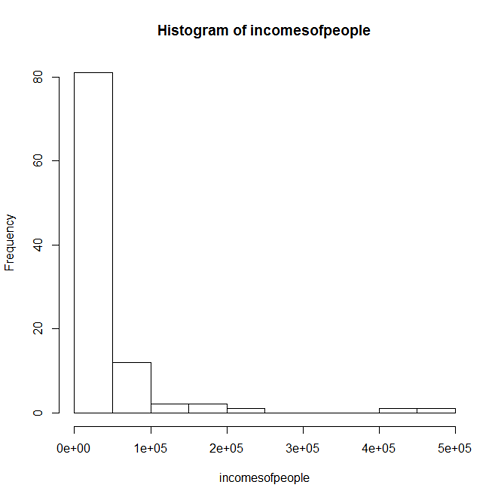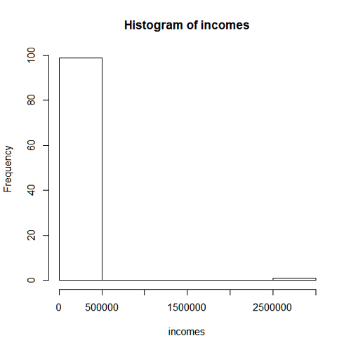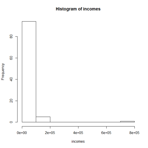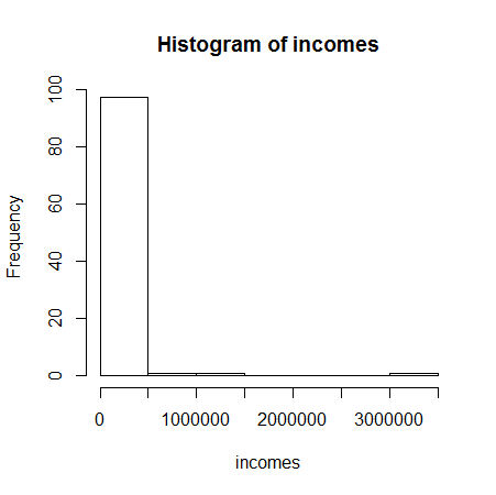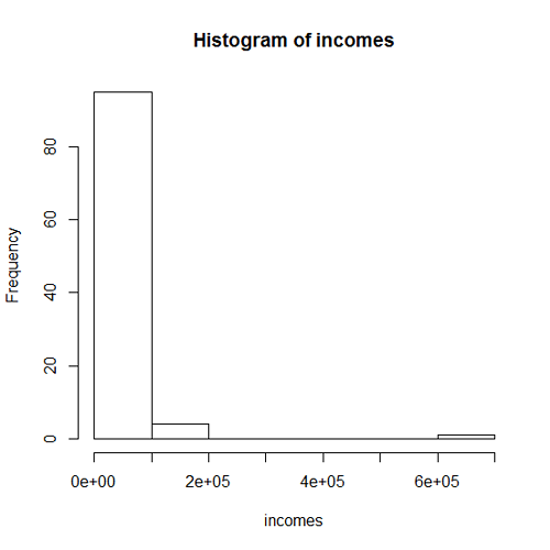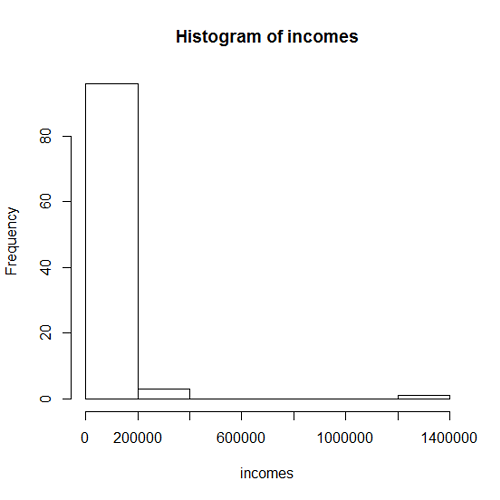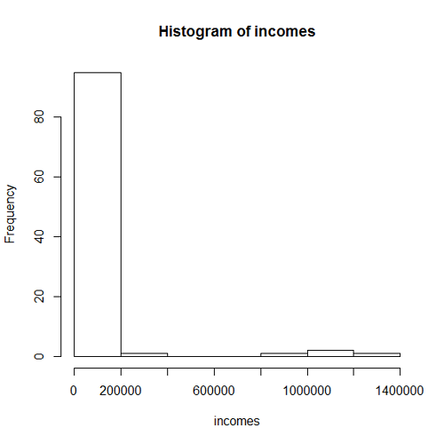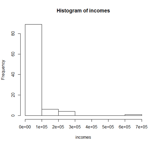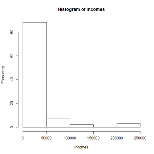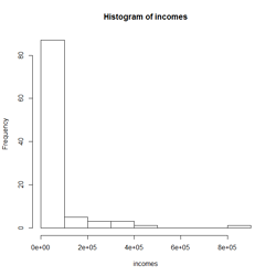 - A histogram for the incomes