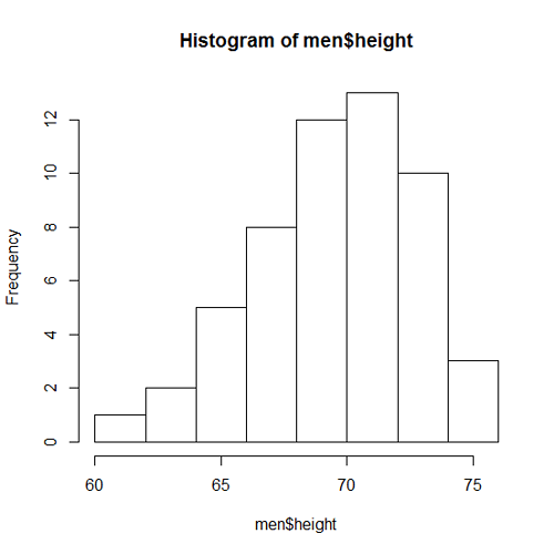 summarycommand) - A histogram for the heights of the men.