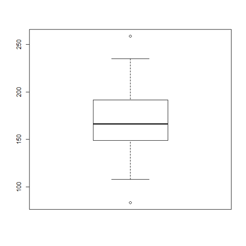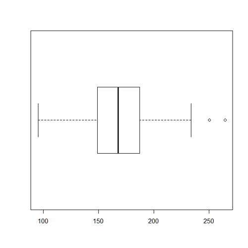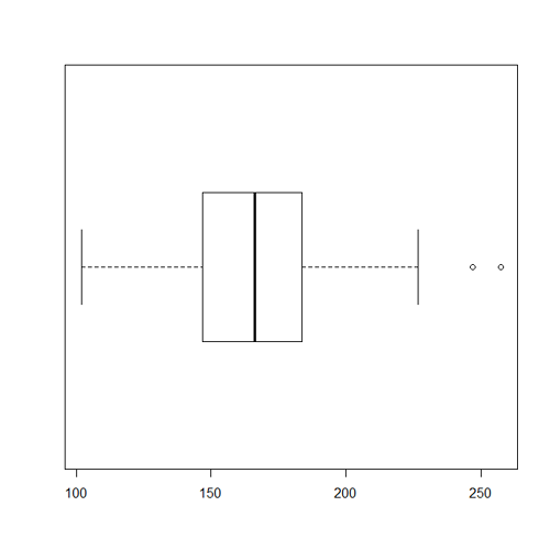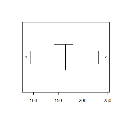 - A box and whisker plot for the weights of the people.